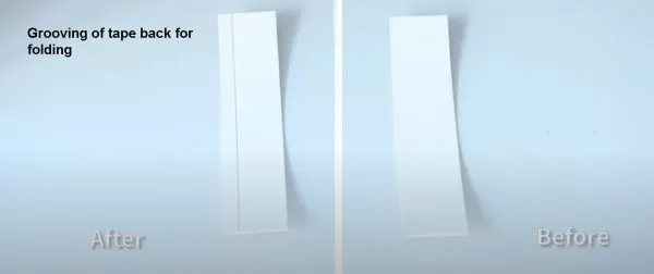 Clever bevel cut into Tape ensures clean fold