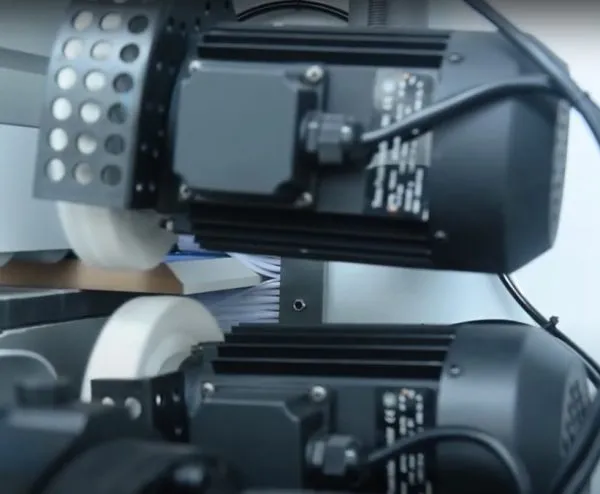 The tape is pressed onto your panels on the straight and bevel by twin pressure roller groups with their own pneumatic cylinders.